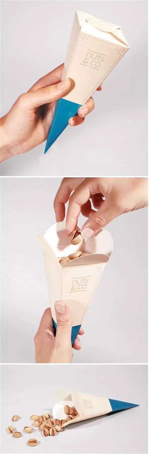 大冬天的來(lái)個(gè)冰欺凌涼爽一下?nonono,人家只是個(gè)會(huì)偽裝的堅(jiān)果罷了,這樣的包裝設(shè)計(jì)很適合拿在手里邊走邊吃,看到朋友還可以大方的賞ta一顆,小編小時(shí)候吃瓜子就是自己用紙張包成類似于這樣的形狀,然后將瓜子放里邊,開(kāi)心時(shí)就賞一些給路過(guò)的小伙伴,別提有多得瑟了。