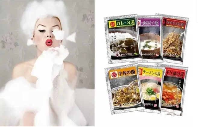 一些商家推出了一系列以日本料理為味道的浴鹽,其中包括你們最愛吃的味增湯、豬骨拉面湯、牛肉飯、日式咖喱、日式炒面等等~講真,小編很是佩服那些化妝品盒廠家們,他們在生產(chǎn)這些包裝的時候不會混亂嗎?