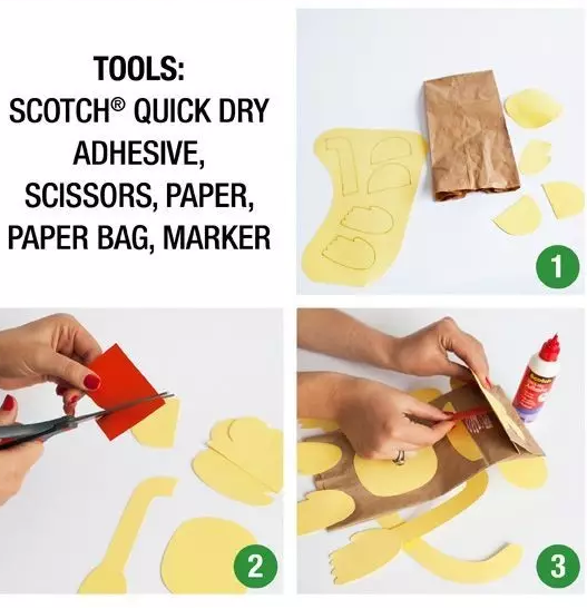 對于可愛的東西相信不論是大人還是小孩都無法抗拒那顆喜愛的心的,就好比下面這個萌萌噠猴子,這個可愛的猴子只需要一個牛皮紙袋和一些黃色的紙張,一瓶固體膠,一把剪刀就可以完成咯。首先你腦海中要有一只猴子的形狀,然后將猴子“截肢”畫在紙上,然后在剪出來,剪好之后就可以用固體膠在紙袋上拼湊猴子的形狀了,拼好之后也就完成了,是不是很簡單呢?