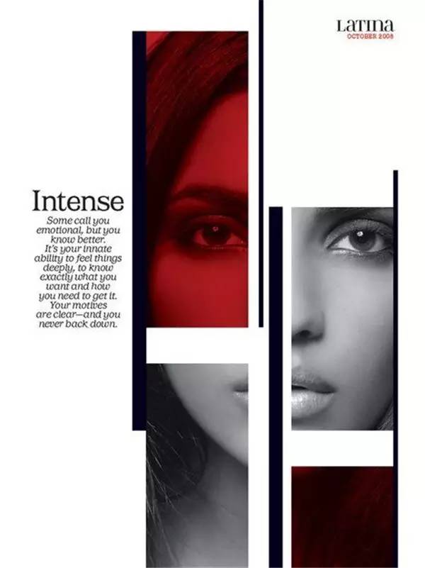 不對稱性的設(shè)計(jì),一張臉分割成幾個部分卻不覺得詭異,反而每一個分割部分都像是特寫,這種排版很適合那些要突出多個重點(diǎn)的吊牌。