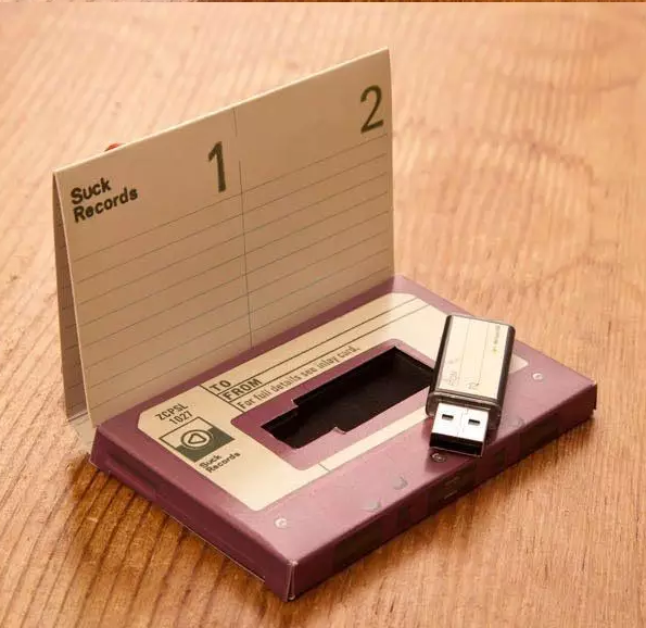 對于80、90后來說,看到這個“磁帶”的瞬間是不是好多美好的回憶如潮水般用來啊,但先不要急著懷舊,因為此“磁帶”非彼磁帶,人家里面裝的是U盤,不是可以放歌的帶子。這樣的產(chǎn)品包裝很容易挨揍啊!