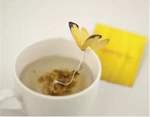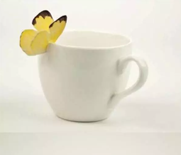 一只蝴蝶翩翩飛來,駐留在杯沿,為的是那股茶香。但是走近一看發(fā)現(xiàn)自己見到了一只假的蝴蝶!