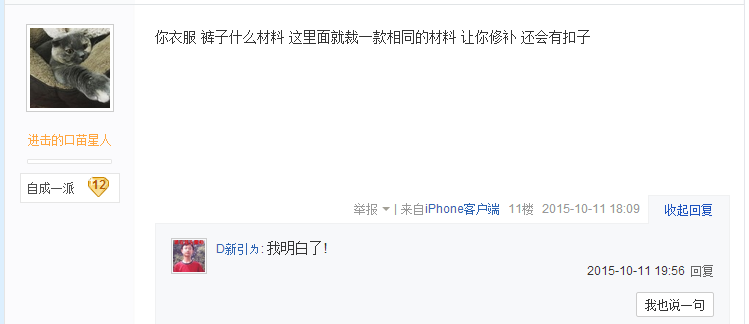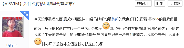 小編在逛貼吧的時候看到一個名為為什么襯衫吊牌里會有布塊的帖子,作為吊牌廠家一員的我在“職業病”的驅使下也點擊進去看了一下,于是小編的知識面又廣了一些,果然,高手都是在民間的,小編給大家呈上一些截圖,讓你們親身體會下。