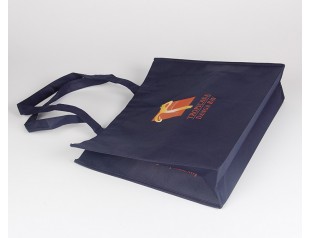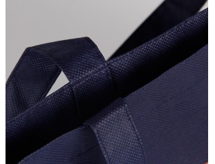 無紡布袋袋身為寶藍色,一種接近于黑色的顏色,略顯低調,但是它的logo可就不低調了,采用鮮艷紅色和橙色,形成鮮明對比,更能突出品牌質感;無紡布袋可折疊不留折痕,上街購物時方便攜帶,是出街必備的好伙伴;相同材質的拎手讓袋子更具有統一性,袋頂內側翻折也有非常細膩的針線。