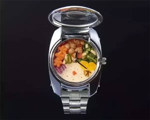 這款直徑30mm的手表便當,是世界上最小的手表便當。雖然塞滿食物但并不影響手表的正常運作,自帶可伸縮迷你筷子,開蓋即食。那么問題來了,那么精致的便當能吃得飽嗎?