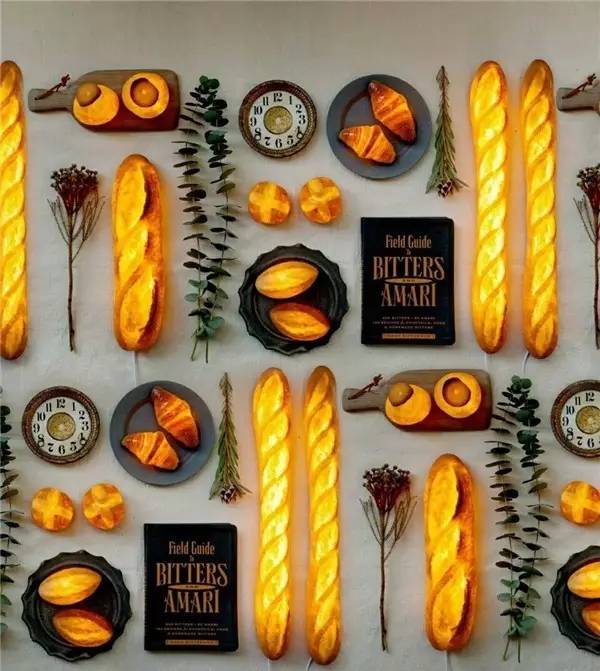 面包燈采用的面包也用面粉、鹽和酵母制成,內置LED燈。表面覆蓋一層特殊的塑料涂層,保持面包的結構和外觀,同時防止面包腐爛,破壞里面的LED燈。這種面包燈裝在餐廳里是不是會刺激消費者的食欲???裝在面包店里又成為了主題面包店了。