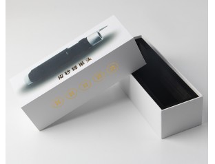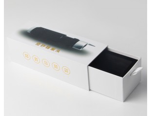 盒子上的品牌名采用亮眼的金黃色,讓人一眼便能記住這個品牌,這是一個很好的營銷手段。抽屜式的設計讓盒子使用起來更加的方便,如果消費者想要看看商品,那這時就方便很多了,拉開抽屜盒就可以了,不用像其他包裝盒那樣因為害怕會拆壞而拒絕消費者的要求。盒子里面配了一個內托,大家都知道,包裝盒的其中一個功能就是保護產品不受傷害,這個盒子有了內托,這樣在商品運輸的或存貯的過程中就算有不慎將它跌落也還有一個保護層。