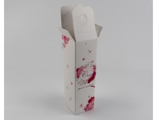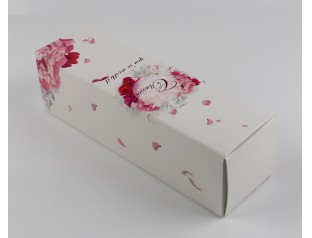 飄散著的粉色花瓣,制造了一種浪漫、溫馨的感覺,情侶間共享燭光晚餐不防也帶上這樣一個酒盒包裝,渲染一下氛圍。駿業包裝設計印刷的紅酒盒一如既往的平整干凈,厚實、美觀,精湛工藝可見一斑。酒盒開口處那固定酒瓶的圓孔設計,別出心裁,卻為攜帶的安全性帶來一份保險。
