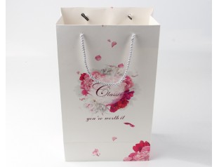 女人愛美,所以需要化妝品來維持自己的美貌,化妝品對于她們來說是非常重要的,所以不僅要求品質要好,連包裝的質量也要過硬才能擄獲各位美少女的心哦~精致的印刷,簡潔的設計,即使是花兒漫天飛舞的場景也不會覺得繁復,logo使用精美的印刷工藝,凸顯品牌質感;拎手處打孔膠封處理,不僅使化妝品紙袋看起來更加的美觀,且更加牢固,不用擔心提著提著就斷掉了。銀色的尼龍繩拎手讓紙袋更顯氣質。