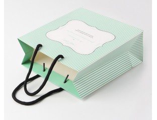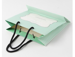 看到這個服裝禮品袋的第一一眼就被它身上小清新的氣質給吸引住了,條紋元素今年可是時尚界的寵兒,看來包裝廠家的設計師們也不甘落后啊,趕上潮流了。