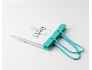 包裝袋的顏色搭配也很是巧妙,整個(gè)袋子就只有綠、白、黑三種顏色,拎手的繩子顏色剛好和紙袋最上端的顏色一致;