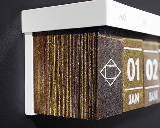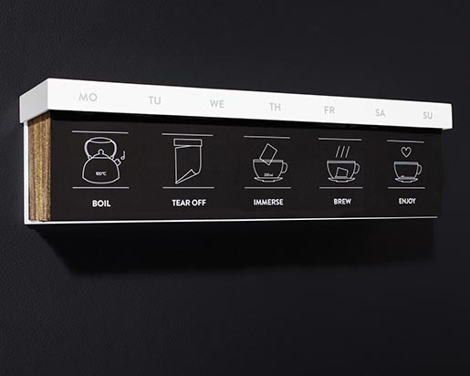 德國茶商Haelssen and Lyon的創意,日歷茶(Tea Cal ar),直接將茶葉處理、壓制成了薄片,上面用可食用的材料印上日期,做成一年的日歷,每天撕下一片來,直接放入開水里就能泡成茶,非常方便又具備時間流逝感讓喝茶的時候能更好的感受和珍惜時間的更迭。可以喝的包裝設計,很是節能環保哦~
