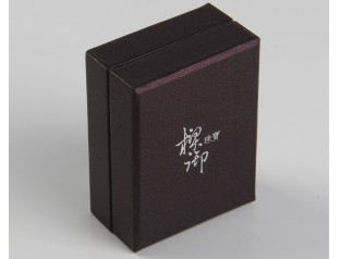 此款珠寶盒包裝采用特種紙裱1000g灰板,商標燙銀珠寶盒設計天地蓋帶圍邊的盒型,圍邊采用深灰色特種紙裱灰板。廣州駿業包裝廠定制的首飾盒采用優良材質,流程機械化與人工的結合,量身定制中高端包裝盒。