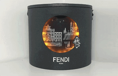 Fendi的月餅盒子大型且別致,是圓柱形,外面站了一個Fendi小怪獸,寫著“Fendi 羅馬”。
