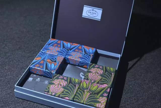 這些品牌絕對不會因為里面裝的是月餅就掉以輕心。比如Prada,外表雖然走的經典風,但仔細的客官可以看到上面是有十字紋的,跟我們買錢包絲巾時候的盒子是一樣的。