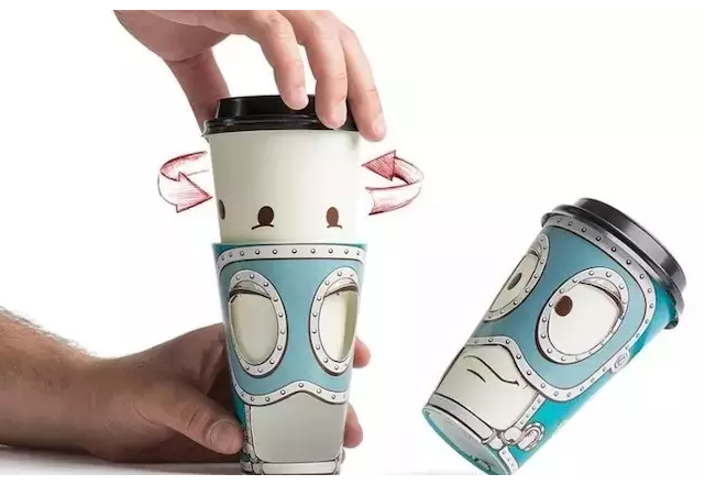 有趣的產品包裝設計,可以為消費者在產品使用之前或使用的過程中,增加一些互動體驗。這一招很奏效,能直接為消費者的產品體驗加分。比如亞美尼亞的設計工作室 Backbone Branding,為當地的 Gawatt 餐廳設計的這款咖啡杯。盡管乍一眼看上去非常普通,但是當你轉動杯蓋的時候,杯身上卡通人物的表情就會開始變化。設計師在每個杯子上都內設了三款表情,消費者可以轉動杯子本身或者外層的杯套,來改變卡通人物的表情。來這樣一杯咖啡小編可以玩上一天!
