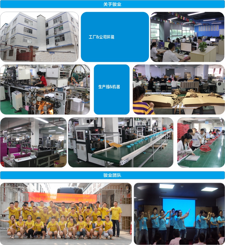 廣州駿業包裝實業有限公司創建于 2001年,是一家以印刷包裝制品為主營業務的集設計、生產、銷售為一體的一般納稅企業,主要生產各種精品包裝盒、紙袋、吊牌,其主要應用于服飾、皮具、化妝品、保健品、禮品、首飾、茶葉、酒類、電子產品及其它日用制品等行業,并通過了德國萊茵認證、BV認證、SGS認證和WCA認證.