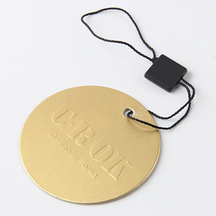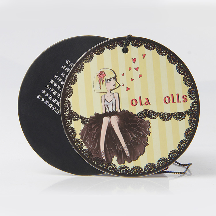 然后走了過去談判桌跟需要這批吊牌定制的品牌商表示,圓形是可以做的,但是按照美觀的角度看的話,光光是一個圓的還不足夠美觀,需要再多加一些東西,比如搭配上再天上一些方塊或者長條塊,因為吊牌的最終目的不僅僅是用來美觀,承載一些需要傳遞給消費者的信息十分重要,而圓的實用性范圍比較小,因為在印刷的時候,控制起來也不叫困難做到完美的居中,所以需要服裝吊牌生產廠家額外做一塊長條形的紙牌來替代這個承載的作用,而這個圓的大主題,就可以用來展示更多的圖案給消費者。