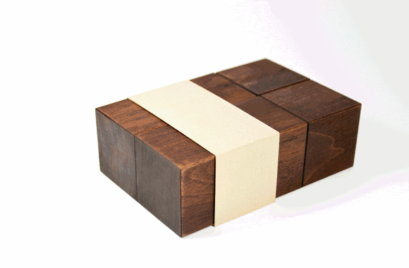 一款小編很喜歡的木質魔方戒指盒,手指輕輕一撥就能輕松打開了。這戒指盒由6個胡桃木材質的立方體,每3個一組,被皮繩連在了一起,其中又有3個立方體中間進行了鉆孔處理,就是這點小小的改變使得剛好可以用來放戒指,是不是很有頭腦咧?